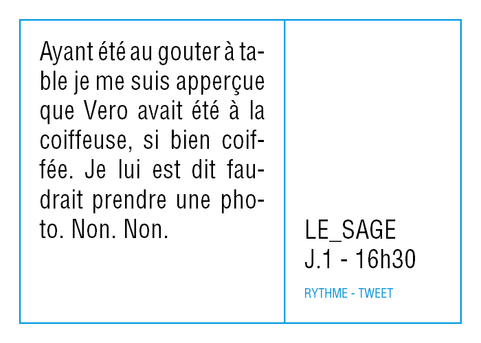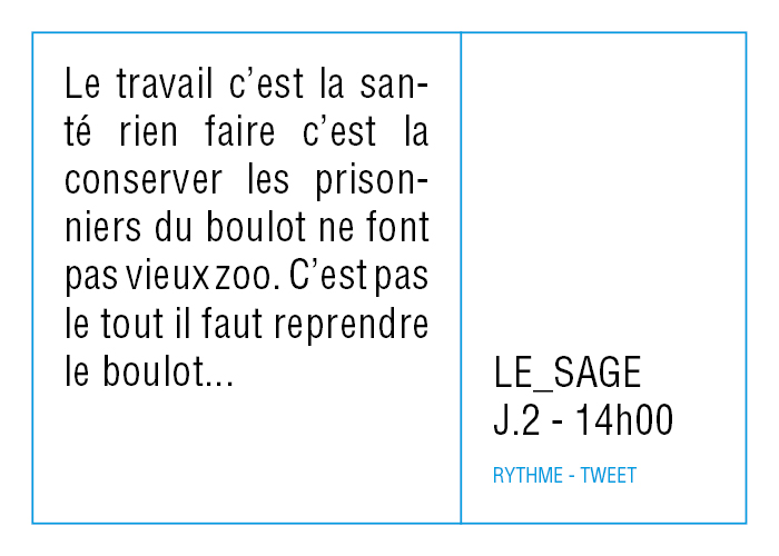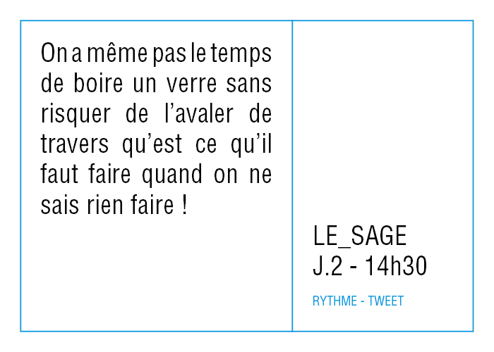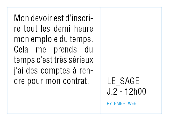Aussi, toutes ces données accumulées ne sont pas là pour être analysées, mais pour raconter autrement, réfléchir à nos rythmes de vie en se demandant ce qu'on veut faire de notre temps, ce qu'on peut faire de notre temps et finalement ce qu'on fait de notre temps.