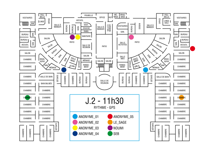 La proposition de résidence a attiré l’attention de Thomas Tudoux sur un point précis : alors que l’accélération constante de notre société est toujours présentée comme une nécessité, nous la subissons chaque jour un peu plus comme une pression. Dans ce contexte, le CHGR propose aux personnes en soin une coupure franche dans ce rythme de vie. Cette pause imposée, souhaitée ou contrainte, est la base de la recherche développée pendant la résidence : les personnes du pôle G04 sont invitées à décrire ce rythme alternatif.