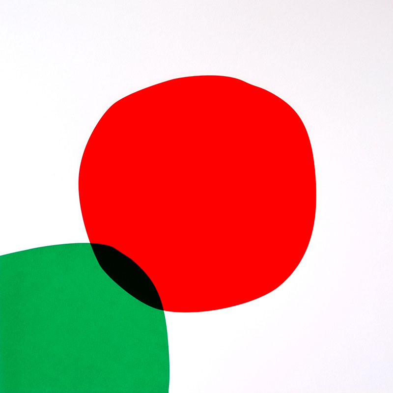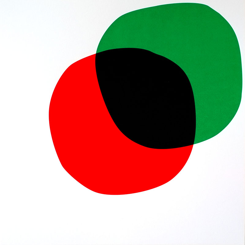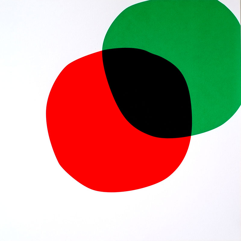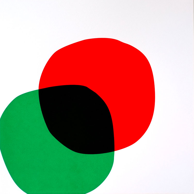 Ni sphères, ni cubes, deux polygones aux angles arrondis, presque identiques, s’approchent, se frôlent, s’effleurent et s’unissent, pour s’embrasser, se recouvrir encore, et disparaître plus tard.