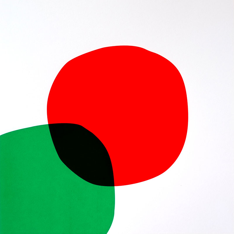 Le vert quant à lui, vient vibrer en mouvement et créer d’autres formes, même quand il est hors champ.