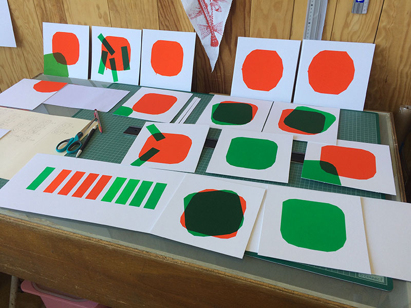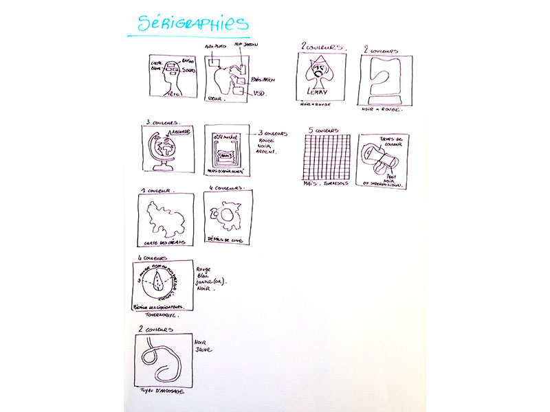 Elle réalise en tout premier lieu une grande planche de projets que seule la technique d’impression pourrait satisfaire, se gardant dans un premier temps de trouver des corrélations entre titre et sujet.