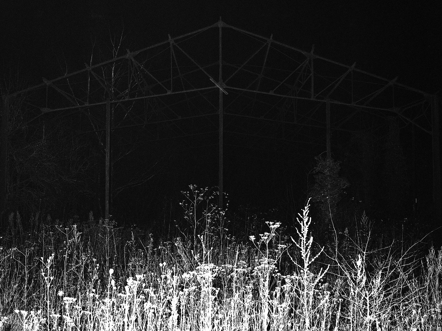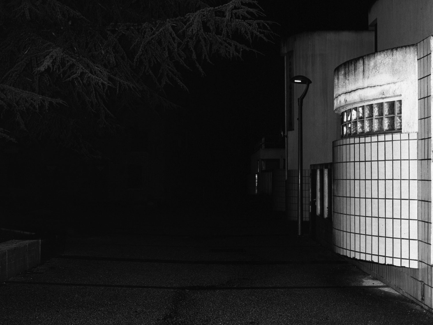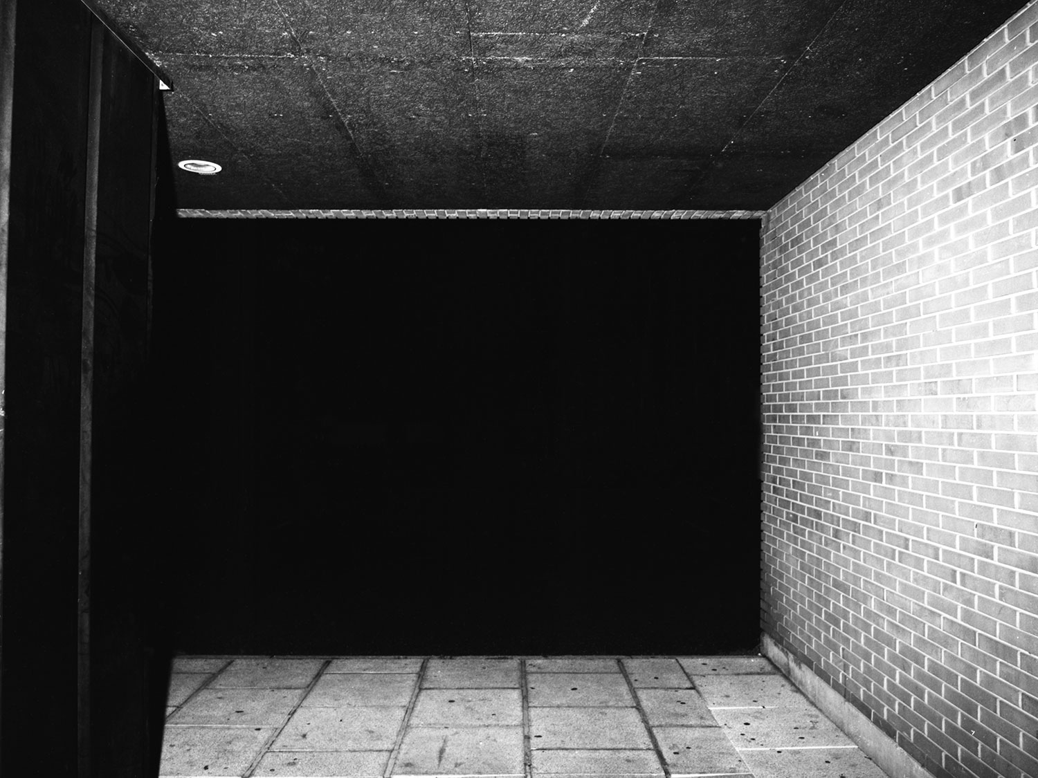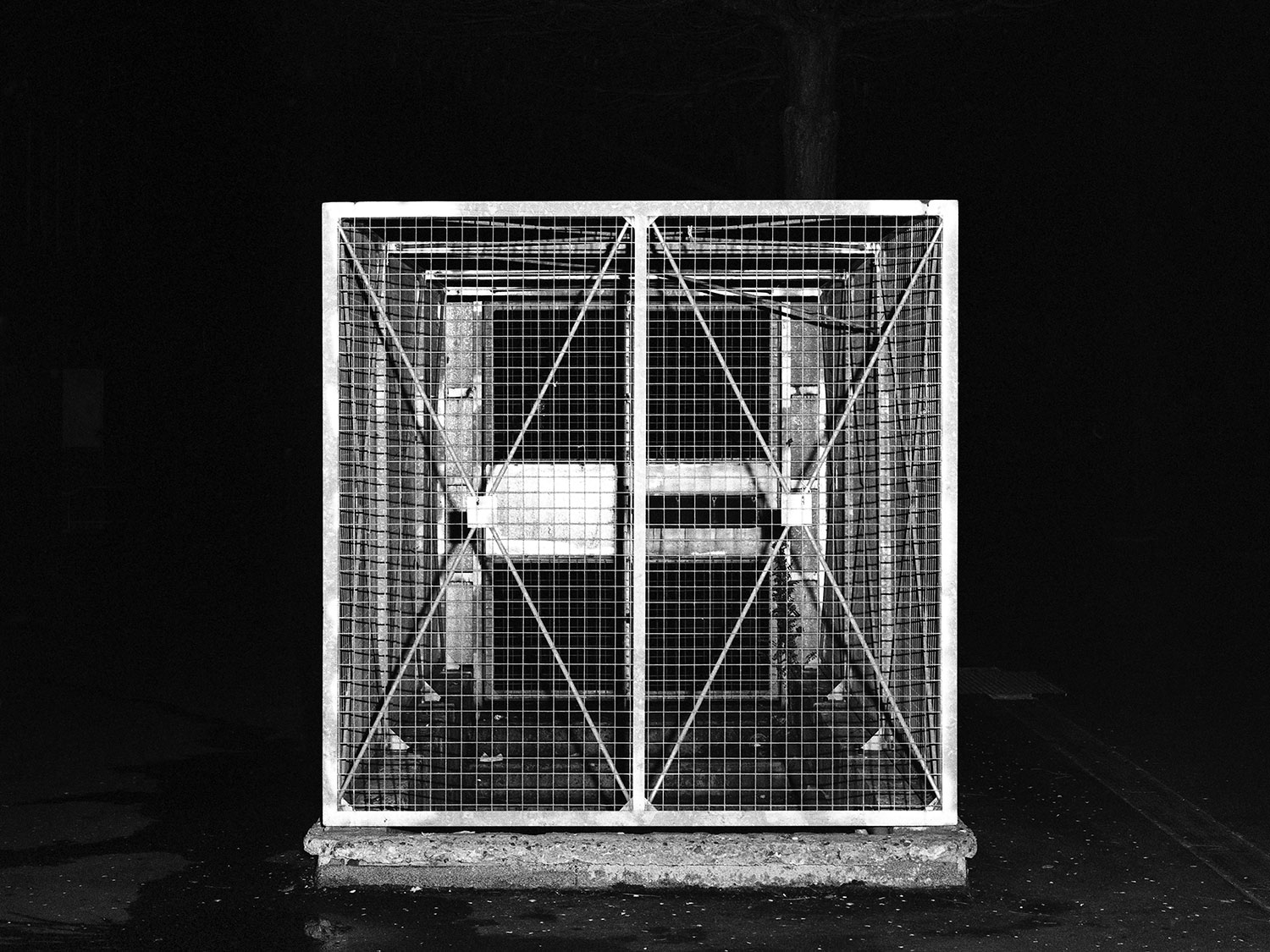 Le projet de Karim Kal suit la ligne D du RER, de Grigny à Corbeil. Les photographies, prises de nuit au flash à courte portée, sont à la fois inquiétantes et familières. Car, au-delà de l’étrangeté de l’image qui se présente, nous connaissons intimement ces formes et ces matériaux, ces passages, ces abris, ces raccourcis qui mènent plus vite à la sortie ou au prochain train. Dans le contraste cru du noir et blanc apparaît également la tension entre l’espace collectif et l’espace privé, entre la planification et l’utilisation, entre l’autorité et la transgression.