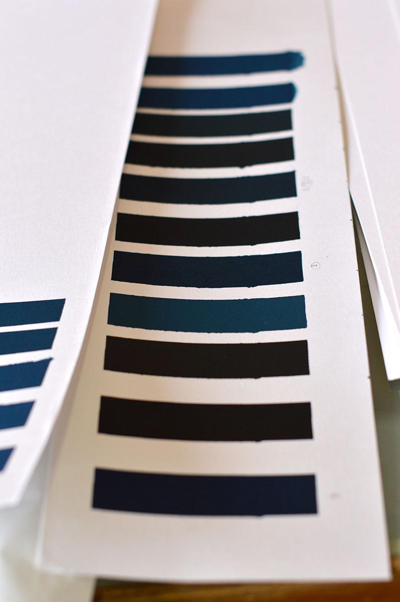 Vue de l'atelier. Recherche de couleurs, positif/négatif.
