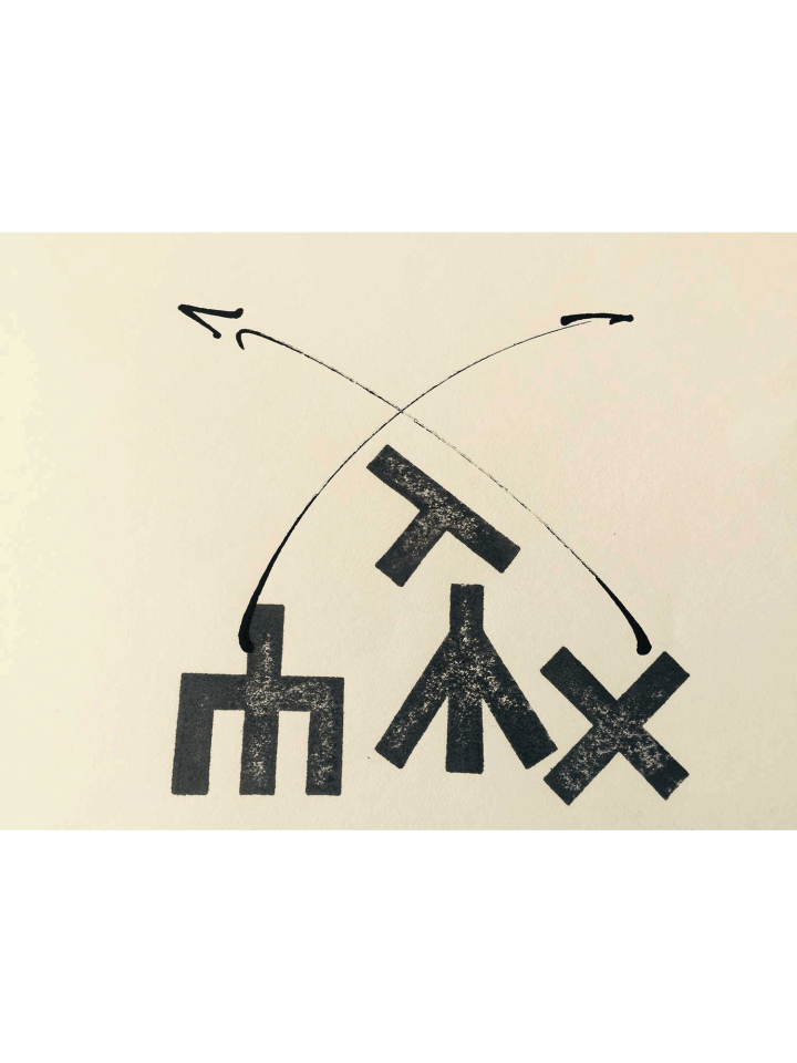 Notamment en lien avec des séries de dessins, de schémas (in méta-archives) que j’ai pu réaliser dans les années 80 qui rappellent étrangement cette écriture.