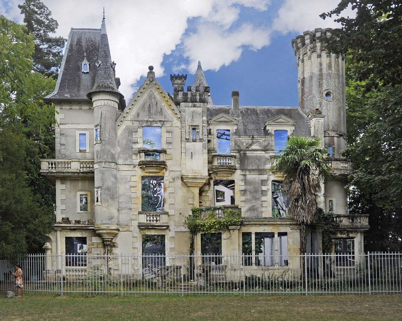 En confiant ce patrimoine à une artiste, la ville de Lormont, propriétaire depuis une cinquantaine d’années de ce manoir néogothique de la fin du XIXe siècle, a choisi de ne pas le restaurer et de le fermer définitivement pour en accompagner la ruine progressive.