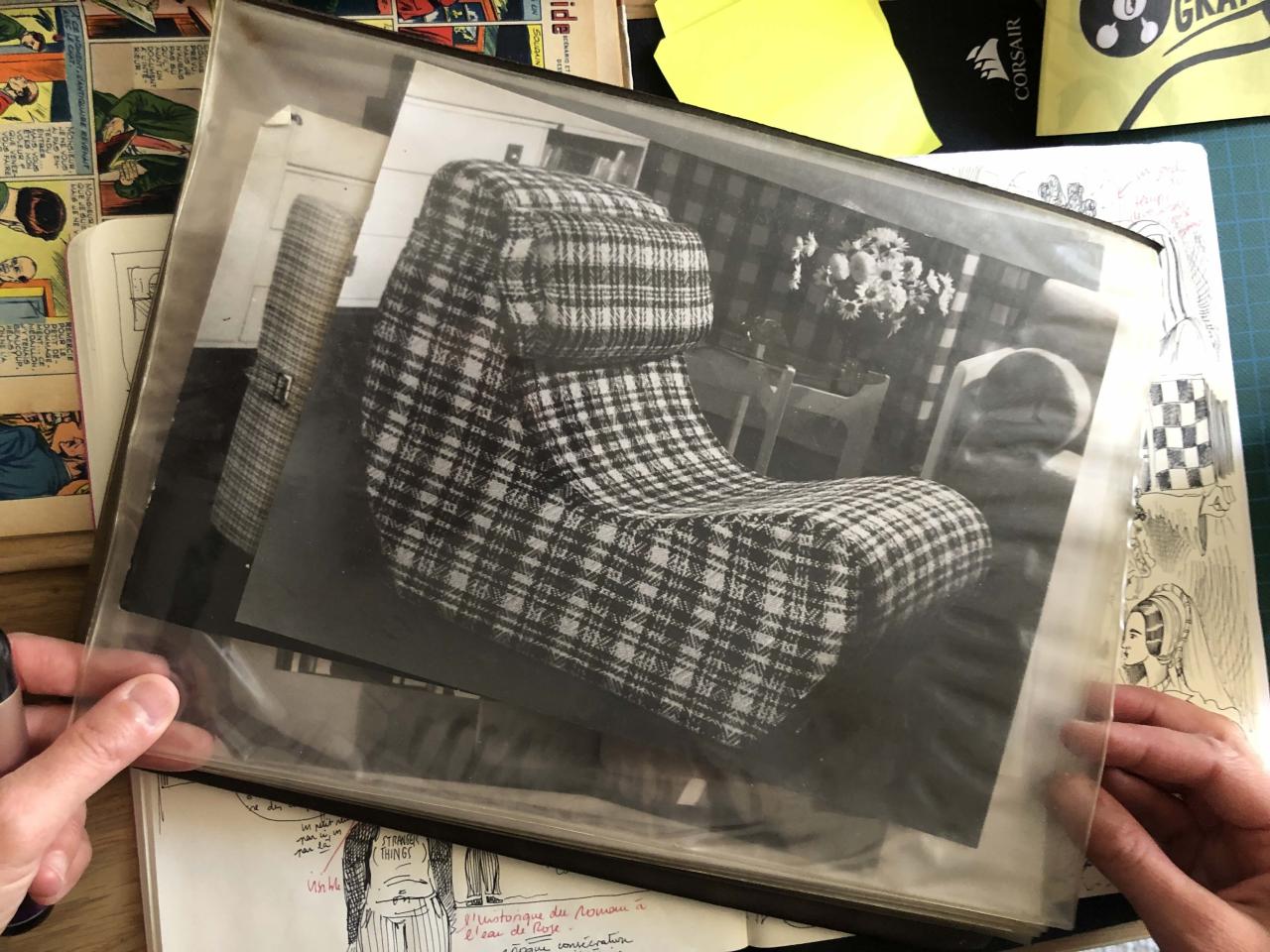 Photographies des meubles créés par Julien Benito manipulées par Camille Lavaud Benito, Eymet, 25 août 2025. © droits réservés