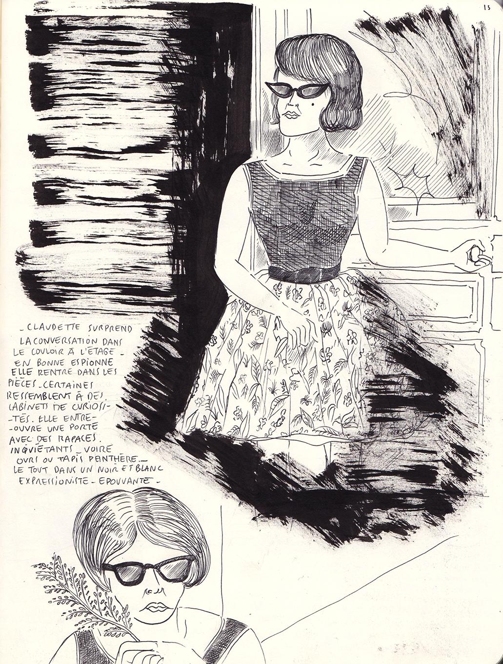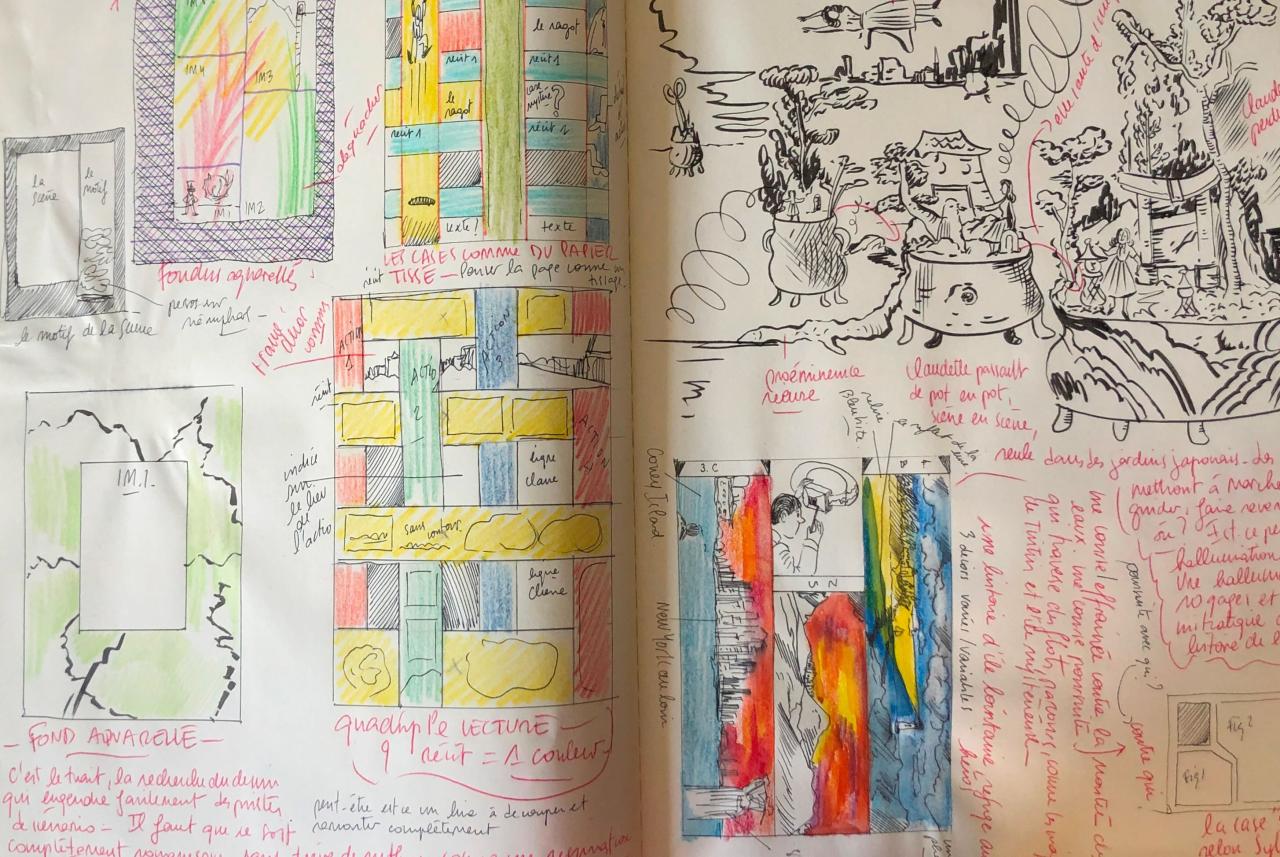 Camille Lavaud Benito, Les mauvaises filles du château de Cadillac, cahier préparatoire, photographié à Eymet le 28 octobre 2025. © droits réservés