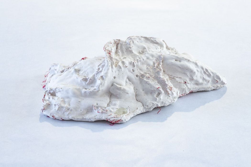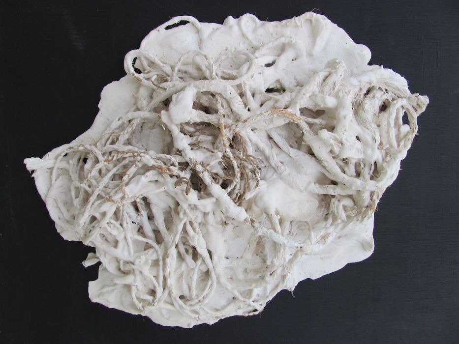 De la Méditerranée à La Réunion, l’impact qu’ont les paysages côtiers, insulaires et maritimes sur l’œuvre de Christiane Fath est indéniable. Avec Océaniques (2015), il s’agit non seulement de voir mais aussi de vivre l’océan et lui redonner corps : Christiane Fath a collecté des déchets issus de filets de pêche et des « bouts » de différentes tailles et de différentes provenances sur les quais de la ville du Port. Dans une démarche qui rappelle certaines sculptures de Cy Twombly, elle redonne à ces rebuts de l’océan toute leur charge symbolique une fois trempés dans un lait de plâtre. Véritables laissés-pour-compte des grands flux migratoires, ces objets anodins, involontairement déplacés par les forces océaniques, deviennent autant de petits fétiches auxquels se rattacher en rappelant l’immensité de laquelle nous dépendons, et symbolisent le lien de La Réunion au reste du monde.