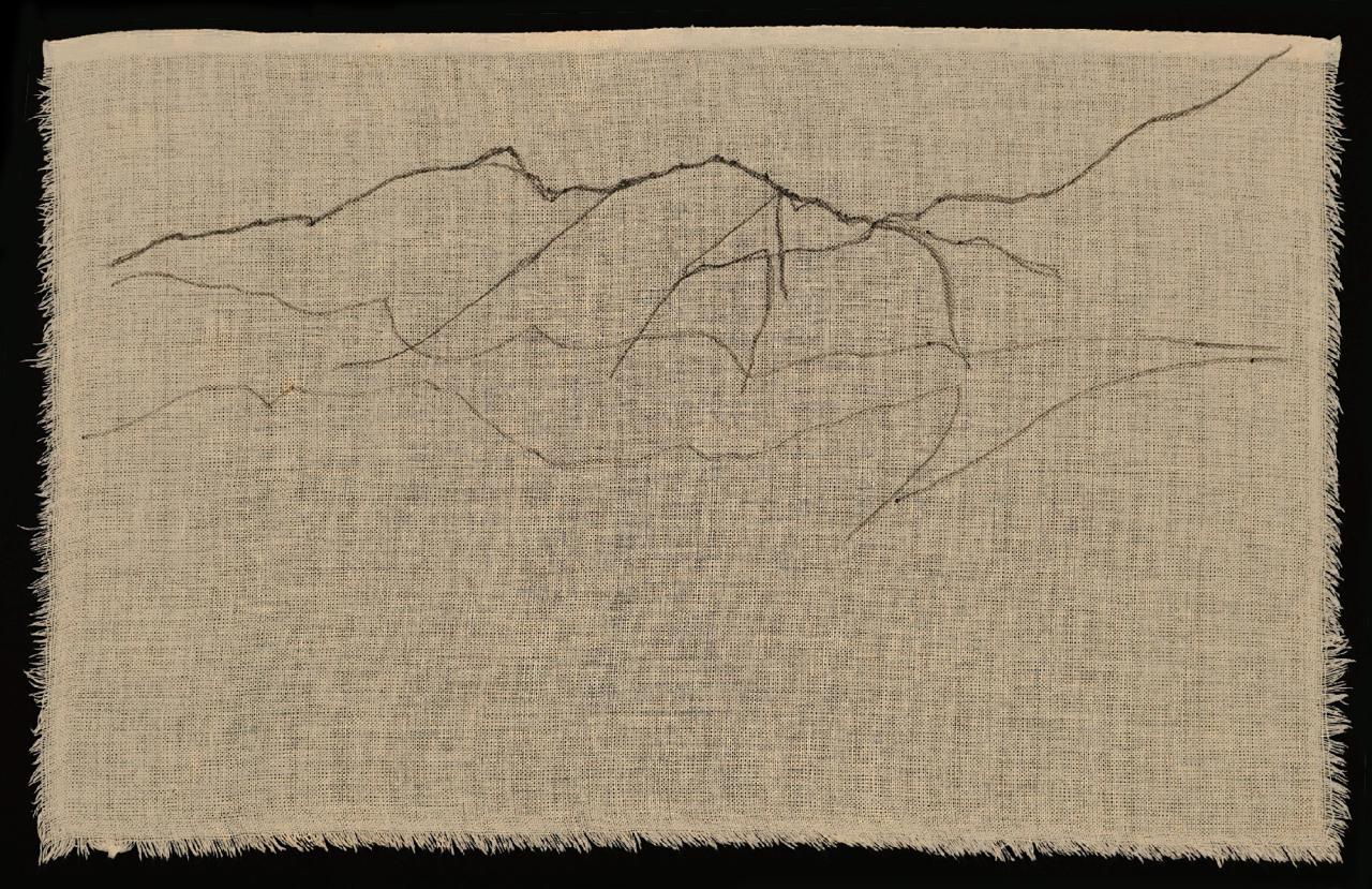 Picturalement, cette influence du paysage et de sa traduction géographique se matérialise par l’utilisation de lignes – rectilignes, courbées ou cassées. Véritables panoramas graphiques, la série des Lignes de crête (2021) qu’elle dessine au Posca sur des formats oblongs de coton retranscrit la vision dont l’artiste fait l’expérience quand elle scrute le paysage de la côte sous le vent, entre la planéité de la mer et les reliefs abrupts du cap La Houssaye. S’il est d’une épure a priori extrême, ce traçage n’est pas moins révélateur du lien étroit que Christiane Fath entretient avec toutes les géographies, qu’elles soient mentales, allégoriques, poétiques ou physiques. Détachées de tout arrière-plan, en flirtant avec une certaine abstraction, ces lignes libres ne déterminent pas un espace délimité et cadré, mais renvoient plutôt à une zone poreuse et indistincte où les différentes trajectoires peuvent s’enchevêtrer. De ligne tracée en fil rouge, de surface houleuse en étendue plane, l’itinéraire que poursuit inlassablement Christiane Fath est à l’image d’un entrelacs de lignes de vie riches de sens et de formes.