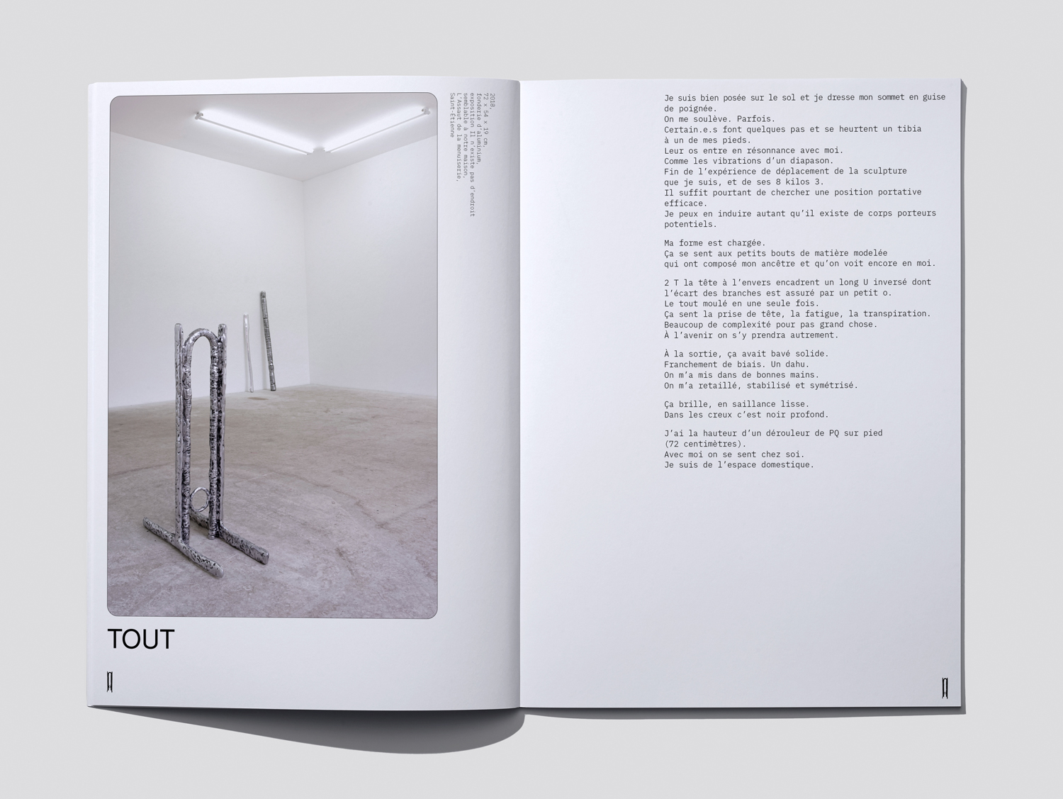 Fonte d'acier, production Fonderie Focast, 3 tirages différents de 123 x 47 x 40 cm et 90 x 55 x 41 cm