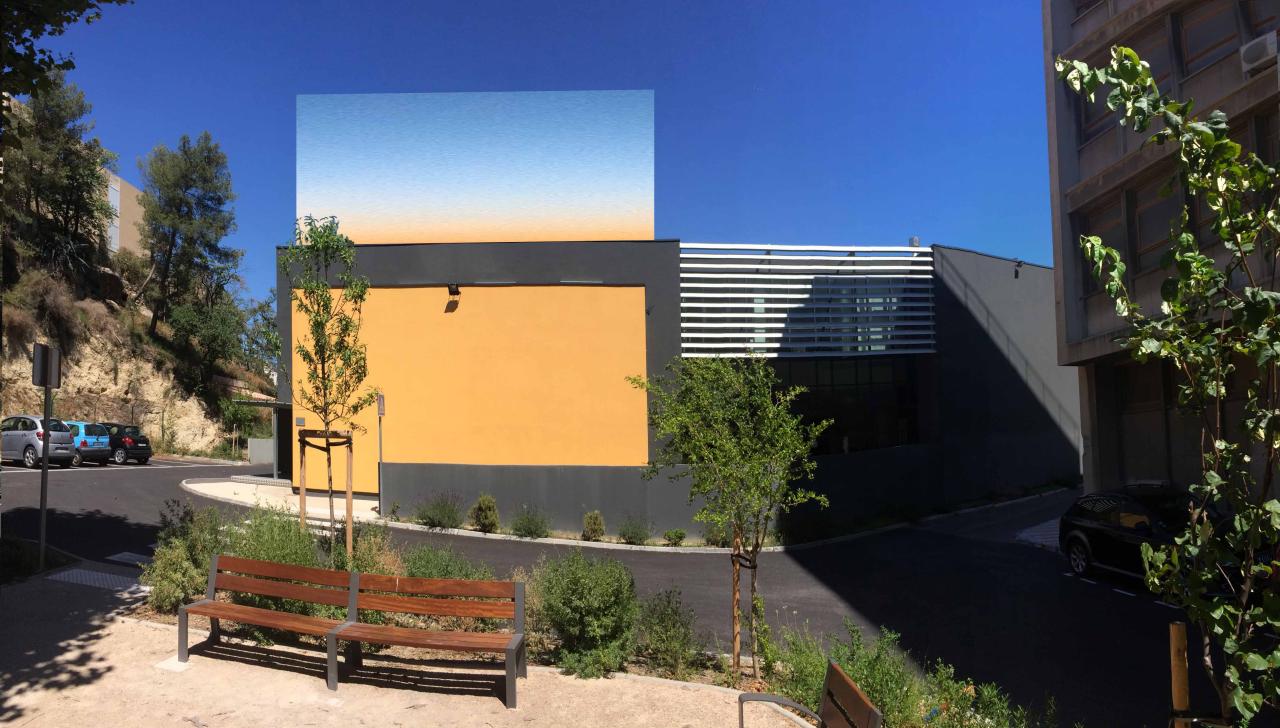 En peintre, en peintre d’aujourd’hui nourri d’un passé millénaire et d’un goût pour l’observation des phénomènes de la nature, Ibai Hernandorena prélève la couleur dans l’environnement direct du bâtiment, comme sur le campus de la faculté de Médecine de Marseille, pour l’appliquer sur une façade jusqu’alors aveugle à son contexte, à la primitivité de l’azur et du soleil irradiant la garrigue, ou comme sur la baie vitrée ouvrant sur le ciel moutonneux et la mer cyan de la pointe bretonne.