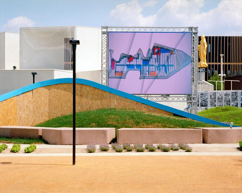L’artiste va en effet chercher la confrontation, il fait face, il cherche à tenir tête. Il choisit minutieusement différents types de lieux dans lesquels il va faire des photographies. Les situationnistes utilisaient le terme de « spectacle », Pascal Poulain utilise celui d’« image » : un showroom pour des panneaux de signalétique ou pour du mobilier de cimetière, où les dispositions des espaces et des objets ne répondent aucunement à leur fonction première mais à un objectif commercial clair ; une exposition universelle (Milan et Shanghaï) ou une foire internationale de jardins (Hambourg et Copenhague), où fleurissent des pavillons nationaux, autant de discours transformés en espaces ; un parc d’attraction comme le Puy du Fou, Santosa, Tokyo Disney Sea Resort's, où le piège est organisé de telle façon que le public ne peut résister et se fait « prendre ». Et évidemment, Shanghaï, Dubaï, Singapour, Tokyo, Bangkok, New York, Rotterdam, Almere, Seoul, Osaka, Berlin : où l’architecture-image se donne à voir et devient une vitrine et un argument dans la lutte concurrentielle que se livrent les villes tout autour de la planète : « je regarde ce qui fait image et je fais des photographies. Dans mon travail, il n’y a jamais d’images au sens large mais des photographies qui s’interposent à des images imposées.4 »