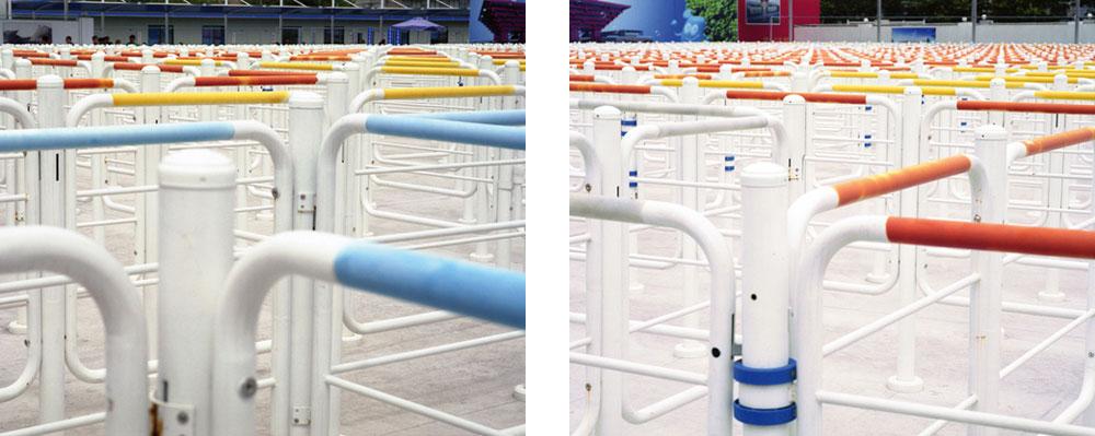On l’a vu avec les deux néons de Cube qui mettent le regardeur et le photographe dans des positions symétriques, la galerie, le musée ou l’espace d’exposition sont des lieux où l’expérience du spectateur sera activée, et donc où elle pourra toucher, en actes, à une réflexion critique. Pascal Poulain pense constamment « exposition ». Au moment de ses recherches préliminaires, lorsqu’il choisit les lieux où il va aller, et sur internet en observant les villes évoluer grâce aux webcams qui « exposent » les chantiers de construction du monde entier. Au moment de la prise de vue. Au retour de ses voyages en uploadant ses photographies sur son site pascalpoulain.com qu’il assimile à son laboratoire. Et en créant les corpus livrés régulièrement à Documents d’artistes : « Je revisite tout le temps la chronologie de mon travail, d’une certaine manière je la reconsidère pour corriger ma production, par association, par déploiement, par déplacement. (…) À partir de 2010, il y a dans mon travail une sorte de réconciliation entre la pratique de la photographie et celle des dispositifs conçus pour l’exposition6 ». Que reste-t-il à l’artiste à une époque où tout fait image et où des photographies sont shootées partout et par tout le monde ? Dans cette situation enivrante, Pascal Poulain pense qu’il reste à l’artiste la pratique de l’espace. Car il s’agit de rendre malléable, transformable « ré architecturable » l’espace organisé des choses et donc des omniprésentes images-dispositifs. En ne s’y soumettant pas, en faisant un pas de côté, il adopte une attitude qui conditionne ses photographies à être montrées dans les espaces « réorganisés » eux aussi. Afin de pouvoir voir ses photographies, les corps vont devoir s’activer. L’expérience de ses photographies est ancrée dans une performativité réciproque des corps : le sien, les nôtres.