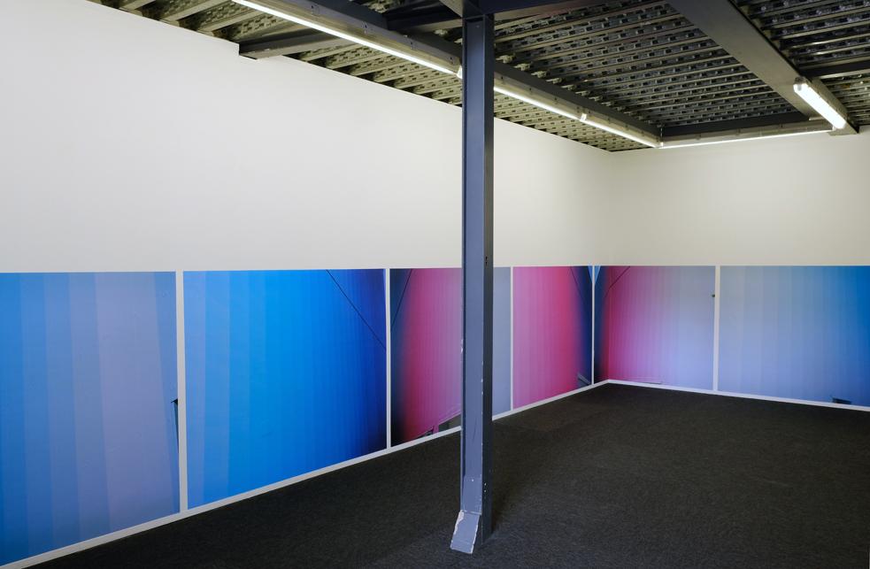 Les expositions du début des années 2000, réalisées à partir d’images dessinées par des publicitaires, sont des témoins précoces de ce type d’investigation : Pascal Poulain rendait ces images monumentales, elles prenaient corps en devenant des bas reliefs se lovaient dans l’espace de la galerie ou se retrouvaient dans un espace inapproprié. L’extraction de leur milieu d’origine et le changement d’échelle leur conférait un aspect doublement critique. Cette tendance à la performativité de ses mises en espace se confirme aujourd’hui dans les modalités d’exposition comme celle de Cube étudiée en début de texte ou Expanded Color où la prise de vue intègre en amont l’espace d’exposition et présente une surface colorée critique ; celle-ci englobe au final littéralement le visiteur et rappelle délicieusement les peintures du Color Field Painting.